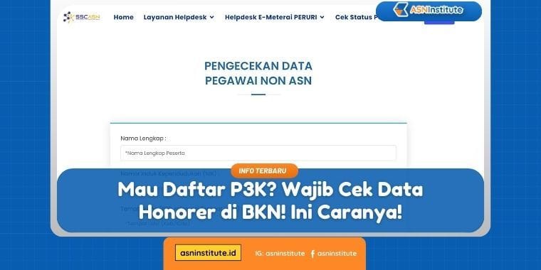 Bagaimana cara cek data nama honorer di bkn? Meskipun laman pendataan non-ASN BKN yang spesifik (bkn.go.id/layanan/pendataan-non-asn/) terkadang mengalami penyesuaian akses, BKN menyediakan alternatif pengecekan melalui portal Helpdesk SSCASN.